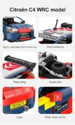 Authentic Design: Featuring a true-to-life replica of the Citroen C4 WRC, this model captures the car’s distinctive features, from its rally-inspired bodywork to its signature sponsor decals and styling details.